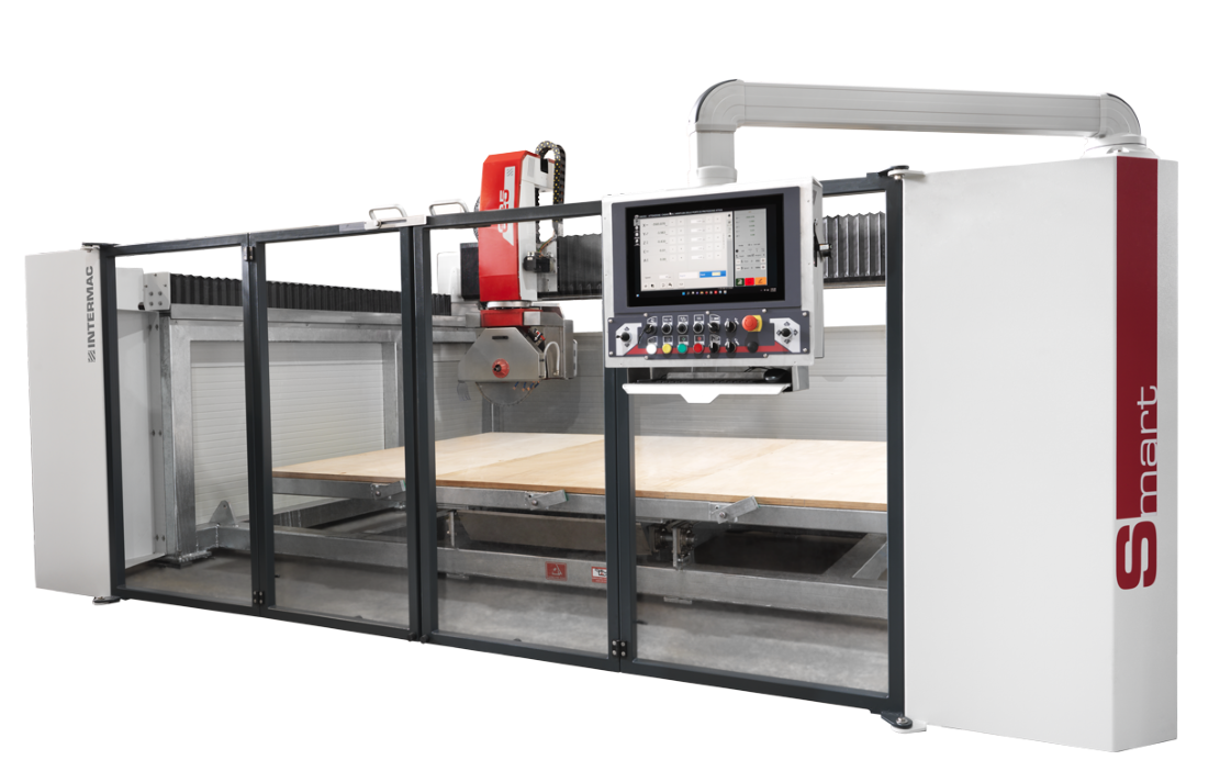 Intermac Master 33.3 - 38.3 - 45.3Today’s market asks for technology with long-lasting reliability, able to handle the new ceramic and syntetic materials to keep up with the latest ideas from the architects and designers.Intermac answers with a NEW range of processing cnc machines with bases suitable sized to accomodatesheet in the natural, ceramic and synthetic materials used for floors, facades and coverings. Maximum flexibility thanks to the wide choice of the optional features.Interface built into the CAD-CAM parametric, so that all the operations can be carried out from within a single work environment. High degree of integration with bridge saws.