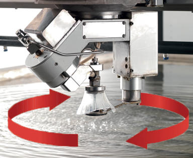 Intermac Primus – Water jet cuttingIn-depth knowledge of the requirements of the glass and stone cutting optimization process has lead Intermac to design a machine that is easy to sue, with limited maintenance needs and high productivity levels, capable of satisfying the most intricate applications, both in terms of flexibility and performance.Maximum programming flexibilityThe five-axis cutting head equipped with the (patented) C-axis with infinite rotation supports the machining of angled cutting profiles (+/-60°) coupled with the highest quality.